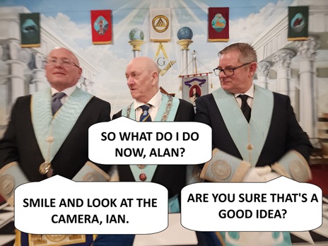 The Installation of Officers included the investiture of W Bro Alan Smelt as Senior Warden, Bro Ian Walker as Junior Warden, W Bro Cawkwell as Senior Deacon, and Entered Apprentice Bro Danny Aldred as Junior Deacon. I stood down as Junior Deacon but remained as Charity Steward.